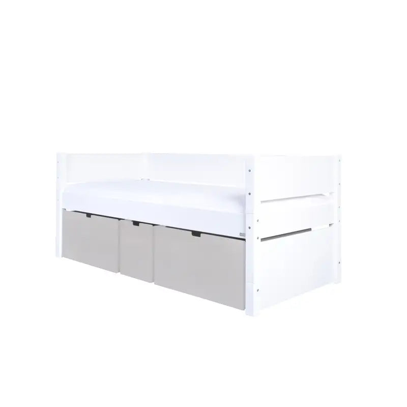 Enekltseng Nanna Med Høje Skuffer I Silver fra Manis-h er ideel til børneværelset. Denne seng kombinerer funktionalitet med et stilrent design.